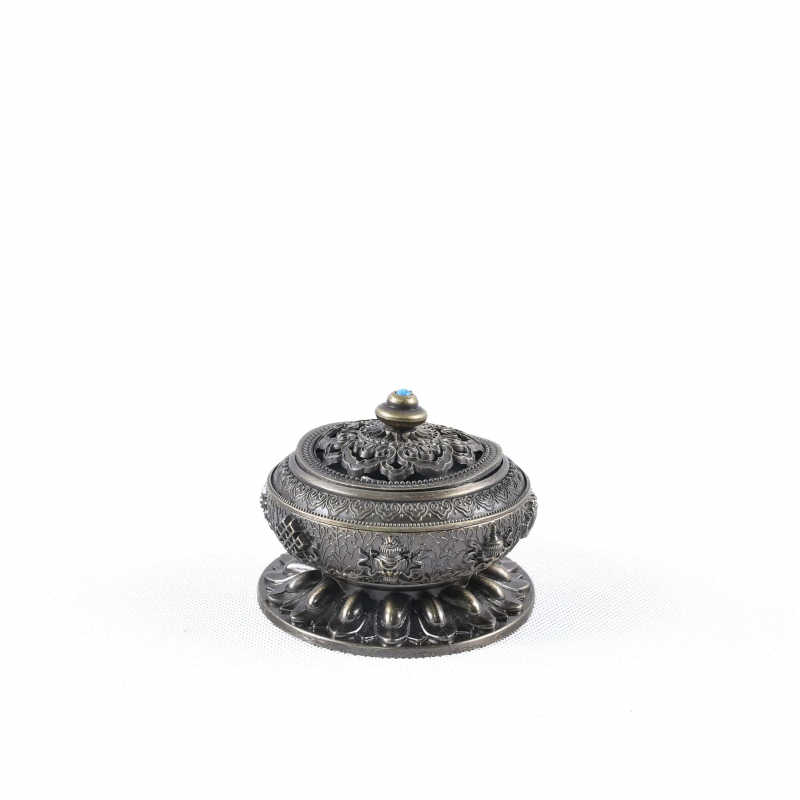 Materiál: kovObsah balenia:1 ks nádoba1 ks veko1 ks stojan na špirálové tyčinkyHmotnosť balenia: +/- 240 gVyrobené v Číne